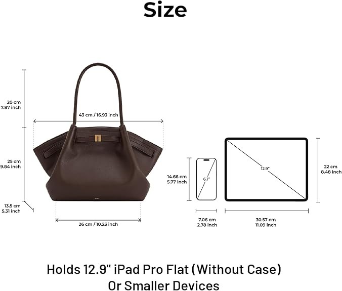 Please note: This medium tote may appear smaller in person than it looks in the pictures. It’s designed to carry everyday essentials such as your phone, lipstick, keys, and wallet. While it can fit tablets under 12.9 inches, the magnetic clasp may not close securely