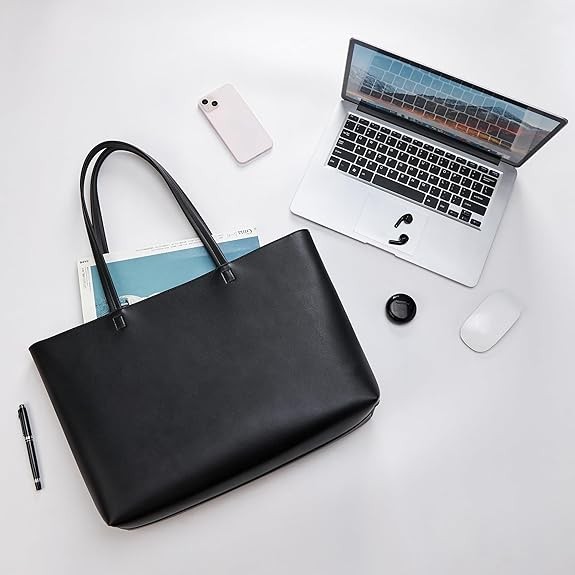 【Premium Faux Leather】 KALIDI tote bag is made of thickened vegan leather with a finer texture, more durable and easy to clean. Note: No lining; material may feel hard/stiff. PU leather has a odour, which will gradually dissipate after 12 hours of ventilation.