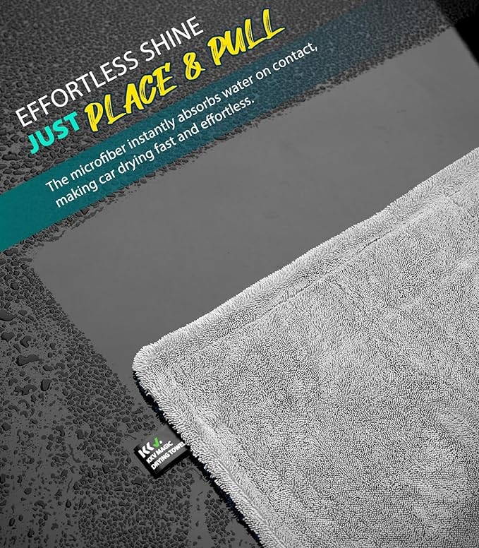 • Twisting Yarn Absorption Technology: Harness the power of 1400GSM (grams per square meter) ultra-fine microfiber with our innovative twisting yarn structure. Capable of absorbing up to 1 gallon of water, this towel guarantees a streak-free, spotless finish, leaving your car’s paint gleaming like new