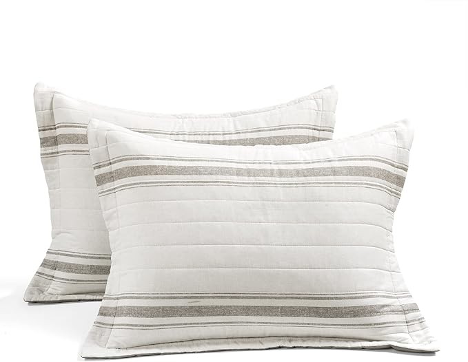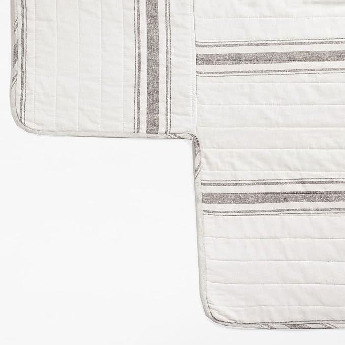 Farmhouse Bedding: Add farmhouse style to your home with the Lush Decor Farmhouse Stripe Cotton Daybed Cover Set. The design is reminiscent of shiplap beams, with a pattern of thin and thick colored stripes on a cream background.