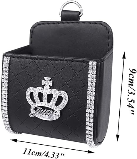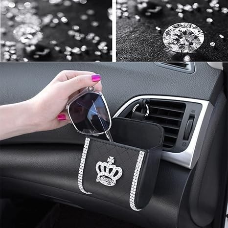 MACHSWON Universal Air Vent Storage Bag Organizer Pocket with Crown and Crystal Car Interior Accessories Phone Holder Bag for Phone, Pens, Key, Sunglass