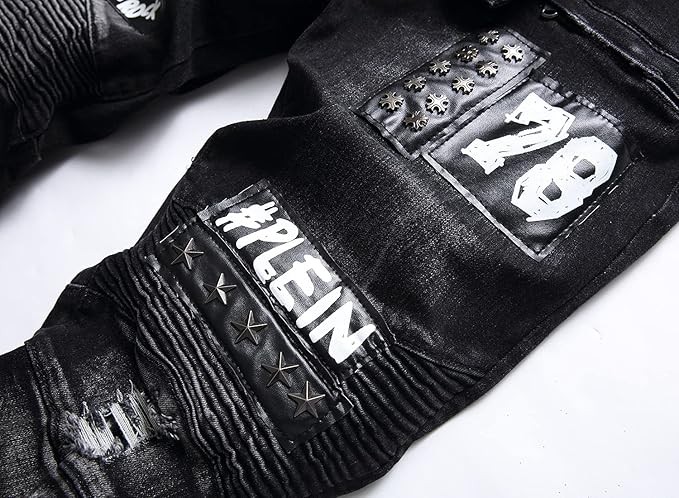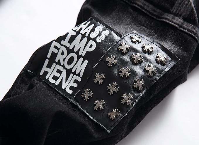 US SIZE.Fashionable Ripped Holes Denim Jeans,Zipper deco