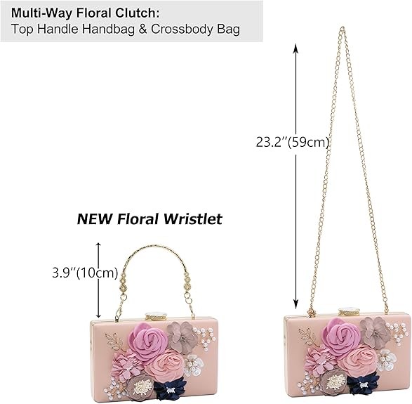 [ Suitable Occasion ] - The size is: 7.9×5.5×1.6inches, this women flower clutches evening bags can put any size of cellphones, lipstick, keys and some little stuff, is suitable to wedding, banquet, party, cocktail, and ideal gift to family, lover, friends