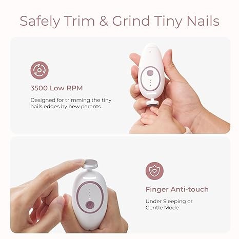 Safe for Baby - Our nail trimmer can choose 3500 lowest RPM for gentle grooming, touch-and-stop function, preventing the baby's finger injuries from accidental hand tremors of parents
