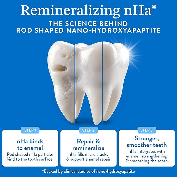 THAT CLEAN DENTIST FEELING: Say goodbye to harsh bleaching agents. Our nano hydroxyapatite toothpaste gently polishes, leaving you with a glossier, smoother "tooth feel" without causing sensitivity.