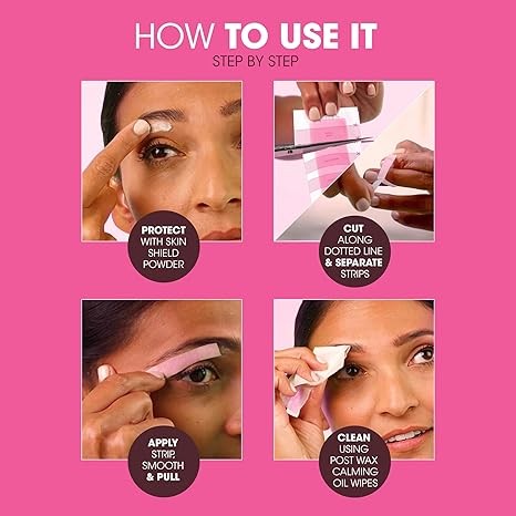 EYEBROW WAXING KIT: Nad's Eyebrow Wax strips includes 6 Template Strips, 6 Calming Oil Wipes, 1 Skin Shield Powder (2g). The bonus skin protection powder ensures that the wax adheres to your hair, not your skin.