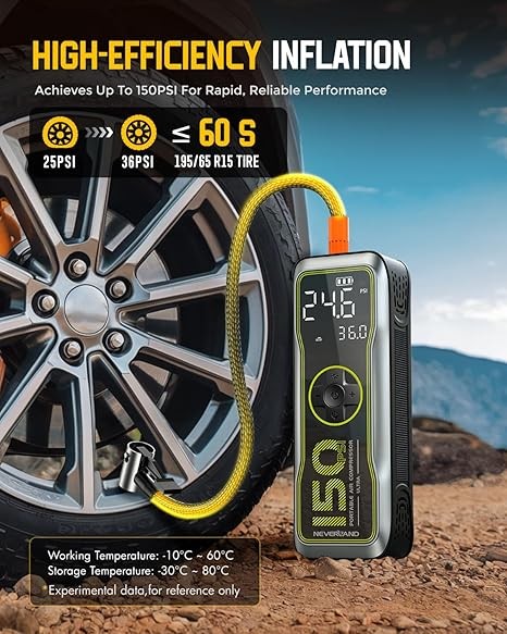 NEVERLAND Tire Inflator Portable Air Compressor - 16000mAh 150PSI Air Pump for Car Tires with Large LED Display,12V DC Tire Inflator with LED Light,Auto shut-off, for Car Motorcycle Bicycle Balls