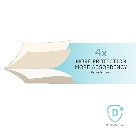 FOUR LAYER DESIGN OFFERS 4X PROTECTION: Hypoallergenic, organic knit cotton jersey top provides soft gentle comfort. Inner polyester fiber fill layer increases absorbency. Breathable waterproof layer prevents leaking. And soft knit back offers extra protection.