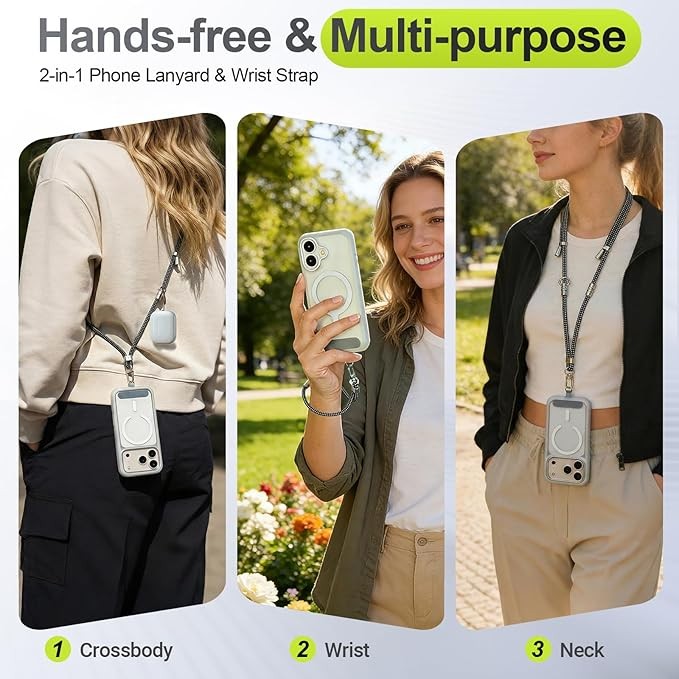 Universal and multifunctional: This crossbody phone lanyard is perfect for iPhone 17 Pro Max (for iPhone series smartphones), for Samsung Galaxy S25 series, and other phones with full coverage protective cases. Moreover, it's not just for phones! Wallets, headphones, keys, flashlights, whistles, sunglasses, small pendant dolls, and more
