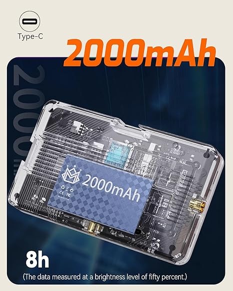 2-12 Hours of Battery Life: In low brightness mode, it can continue driving for up to 12 hours, even with the highest brightness, it can maintain a usage time of 2 hours. Type-C fast charging takes 2 hours to fully charge, supporting simultaneous charging and usage.