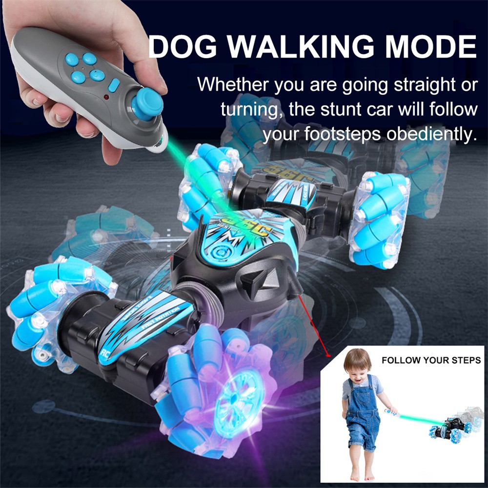 (1) The innovative operation mode of the somatosensory remote control will surely make your child feel excited and happy. It is a perfect gift for your child. (2) The essential operation of the stunt car seems simple. Sti,to operate the stunt car to perform various stunts, children need to practice and try to exercise the child's handeye coordination and concentration.