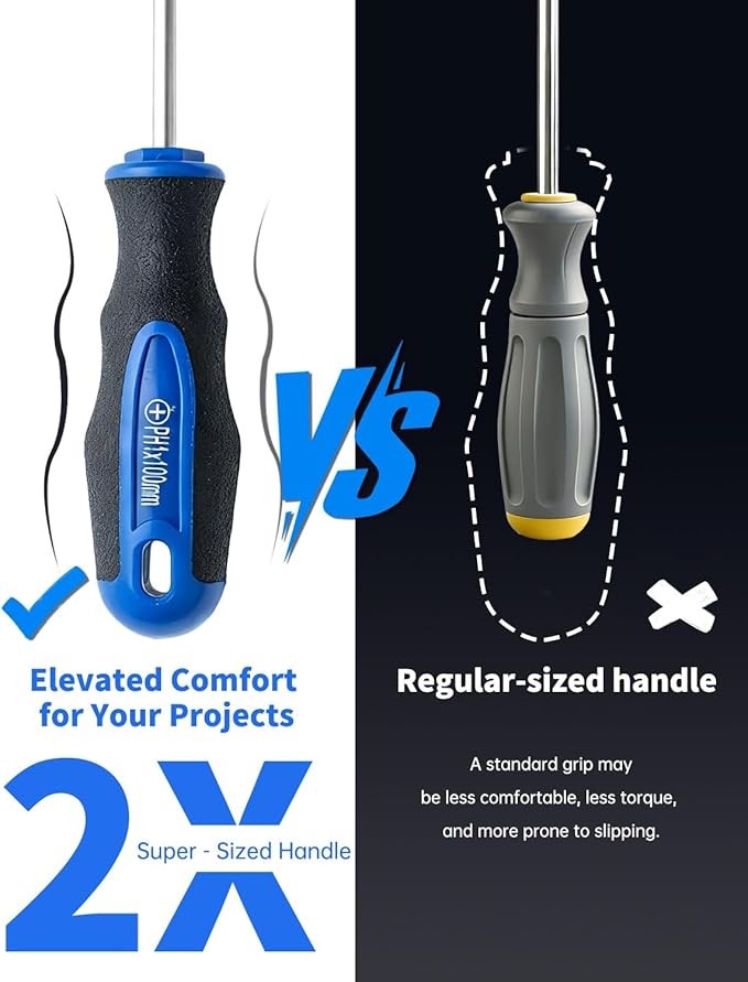 ERGONOMIC HANDLE - non-slip and soft handle provides you a comfortable hold as well as maximum control at work. Handle slot accepts other screwdrivers for added leverage.
