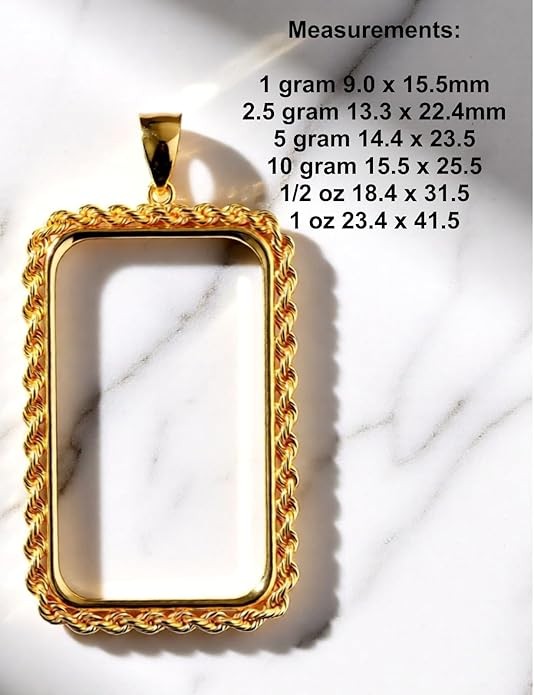 EASY TO WEAR AND DISPLAY – Designed with a sturdy bail that fits up to 3.5mm chains for 1g–5g bars and up to 4.5mm chains for 10g and larger bars. Simply insert your bar and fold down the prongs for a secure, professional-looking fit.