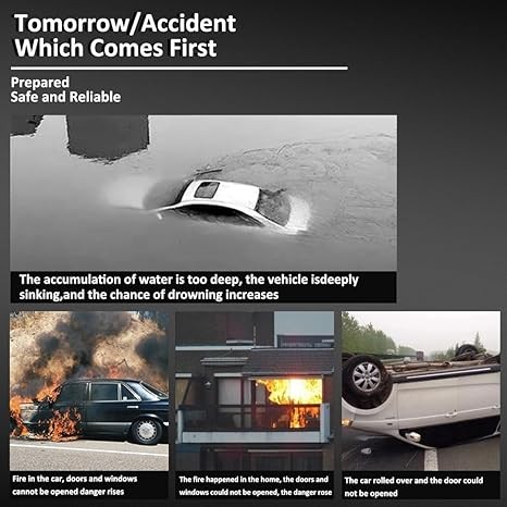 Seat Belt Cutter: The seat belt cutter features a built-in stainless steel cutter with a U-shaped hidden knife edge design, ensuring safety and preventing hand injuries. Simply align the U-shaped mouth of the cutter with the seat belt, push it forward swiftly, and get out of the vehicle easily and quickly.