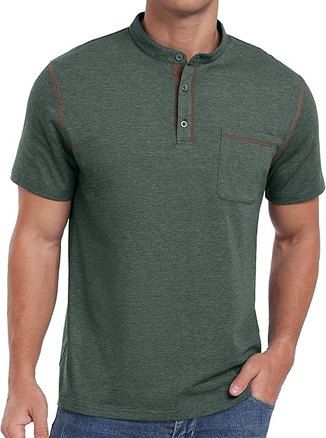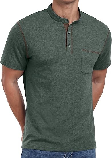 【Stylish Design】Henley t shirts for men, short sleeve, featured 3 button detail, chest pocket, color contrast.