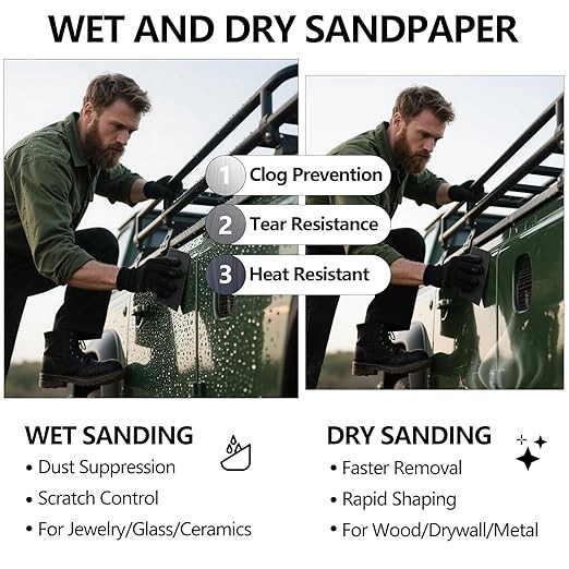 Wet and Dry Use: It can be utilized for both wet and dry sanding. Wet sanding helps reduce the occurrence of scratches and minimizes dust emissions, while dry sanding offers faster material removal and convenience