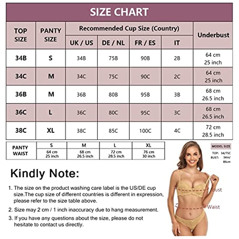 【 Package Included 】 -- 1 Bra + 1 Thong, Multiple colors for you to choosewith sizes ranging from 34B to 38C
