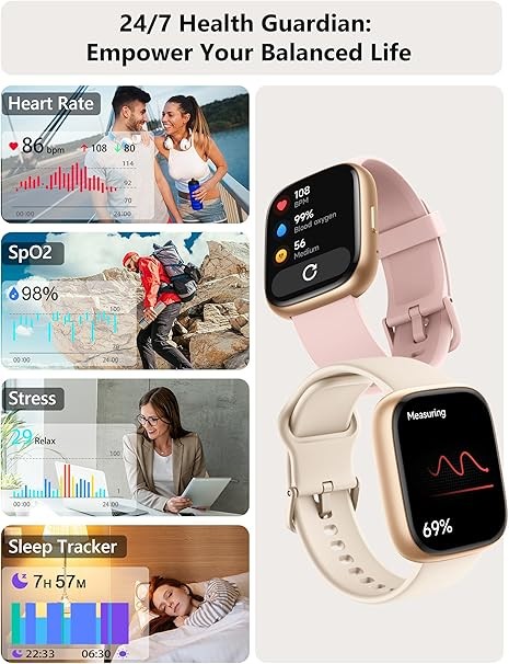 【2026 Upgraded All-Day Health Guardian on Your Wrist】This women men smartwatch provides 24/7 monitoring of heart rate, SpO₂ and stress levels. Guided breathing exercises help restore calm. Automatically tracks sleep stages (????????? ????). Women's cycle tracking and hydration reminders included.