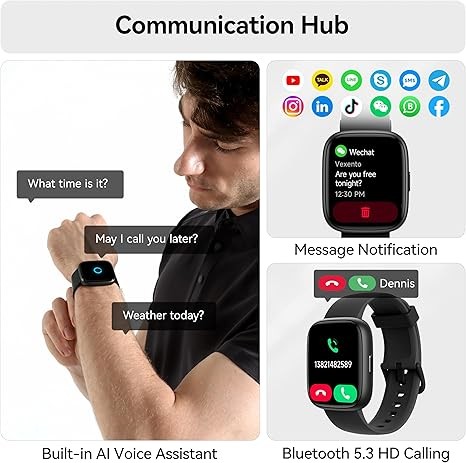 Built-in Alexa Voice Control: This smartwatch integrates Amazon Alexa's intelligent voice assistant, delivering a comprehensive hands-free experience directly from your wrist. Simply speak commands to instantly access news, weather, and calendar updates, set reminders, control smart home devices, and manage music playback. This full suite of voice-activated functionalities streamlines daily routines, enhances multitasking efficiency, and keeps your hands free for the moments that matter most.