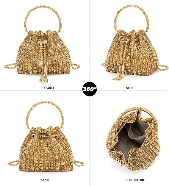 FEATURES: Our luxury glitter evening clutch is chic and unique with metal loop handles, detachable shoulder strap and full of dazzling rhinestones, All-round sparkling appearance, very fashionable, make you stand out from the crowd. Tassel & Drawstring Design-protect your bag with a tassel hook & drawstring and tensioning the chain securely. This Evening Clutch Bags will make you a dazzling one on every occasion.