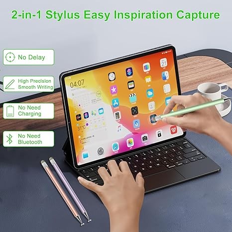 【2-in-1 Design Stylus】stylus pen is made of lightweight alloy, and there is no need for Bluetooth connection or charging.stylus for ipad pen has different nibs at both ends. One end is a disc nib/0.2in, which is suitable for taking notes and drawing, and the other end is a durable fiber nib/0.3in, which is used for browsing or scrolling web pages. It can be used after opening the package to meet your different needs. It feels comfortable, durable and anti-aging, making everything feel like writing on paper, and easily capturing inspiration.