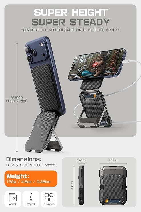 SUPCASE for MagSafe Wallet with Stand, Magnetic Wallet for Men, [Hold 5 Cards] [Adjustable Stand] [RFID Blocking] Phone Stand Credit Card Holder Tripod for iPhone 17/16/15/14/13/12 Series, Carbon