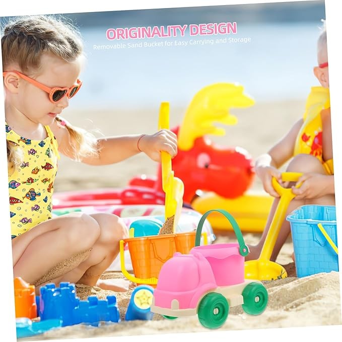 SUPVOX Cartoon Beach Sand Car with Detachable Bucket Multi Use Beach Truck for Summer Fun Ergonomic Design for Easy Handling for Family Outings and Sandcastle Building
