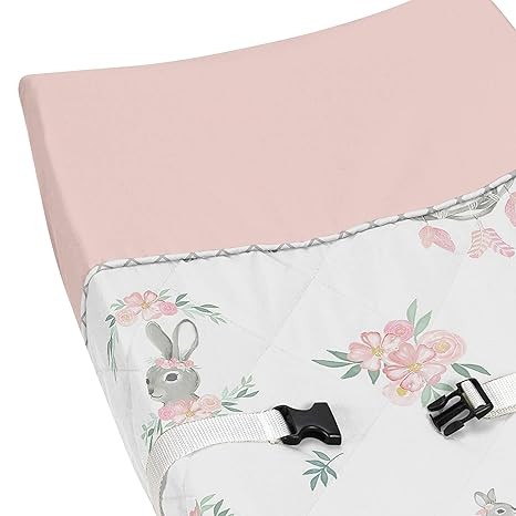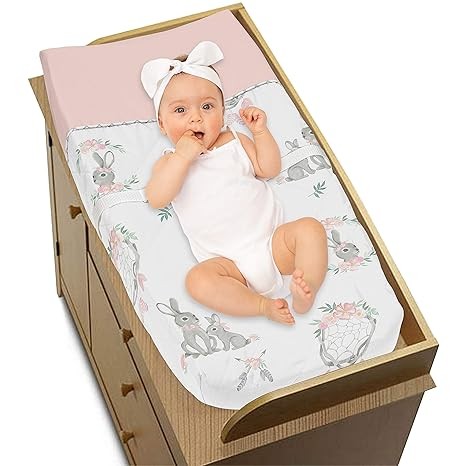 Sweet Jojo Designs Blush Pink and Grey Woodland Boho Dream Catcher Arrow Girl Baby Nursery Changing Pad Cover for Gray Bunny Floral Collection - Watercolor Rose Flower