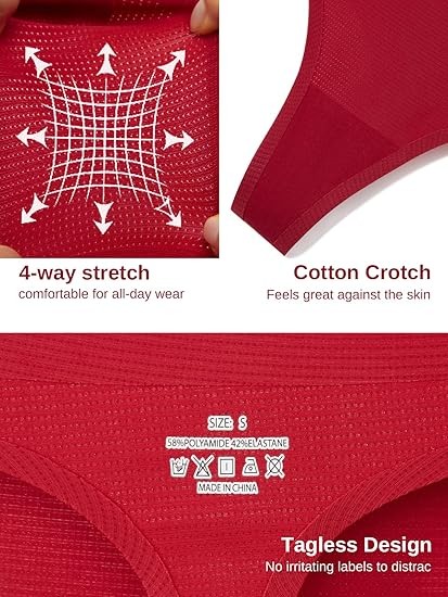Tag-Free & Breathable Mesh: No irritating tags, just a smooth, breathable feel. The womens underwear mesh fabric promotes airflow, keeping you cool and comfortable, whether you’re at the gym, in the office.