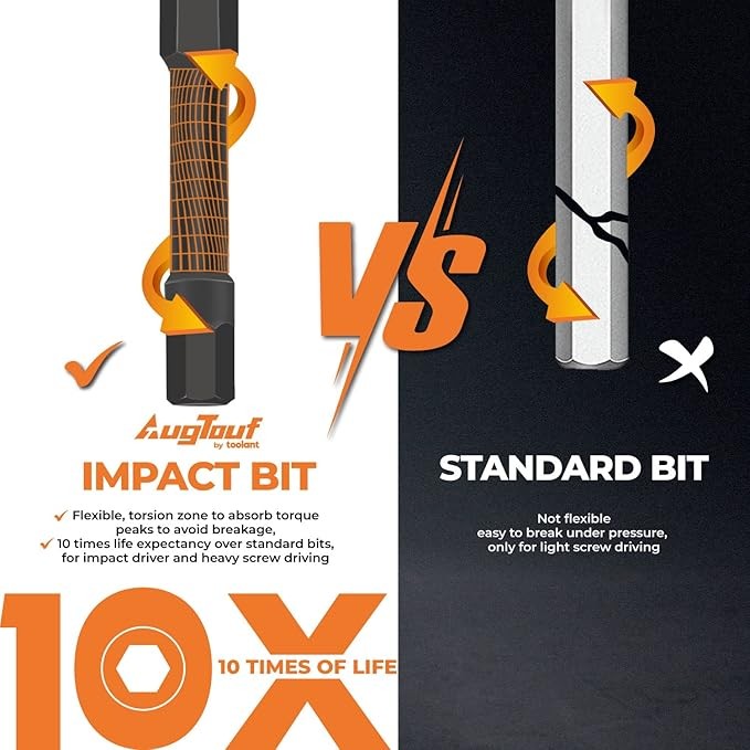 Strengthened magnetic impact bit helps you easy pick up screws. The magnetism doesn’t decay after multiple uses.