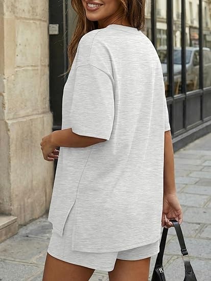 • Ultimate Summer Comfort & Effortless Style—Crafted from a luxuriously soft, breathable blend of 92% Rayon and 8% Spandex, this cozy two-piece set feels lightweight and gentle against your skin - perfect for hot days. The relaxed, oversized top with side slits and easy-breezy shorts with an adjustable drawstring waist deliver all-day ease with an athleisure-inspired vibe. Slip into this set for a chic, put-together look that moves with you.