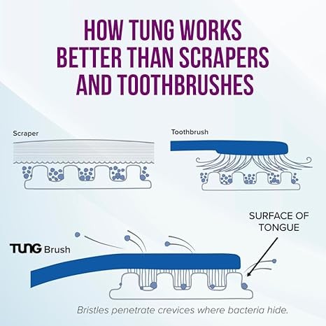 NEVER FEEL ANXIOUS ABOUT BAD BREATH AGAIN: You can't smell your own breath; don't get caught not knowing! If you ever have lingering doubts about the freshness of your breath, The Original TUNG Brush and TUNG Gel—your ideal Tongue Starter Kit—will give you complete confidence; use this tongue cleaner and gel combo to feel fresher than ever before; WATCH OUR INFO VIDEO IN IMAGES TO LEARN THE FACTS