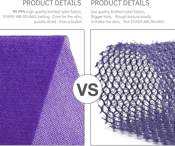 【More efficient cleaning】The exfoliating body net is rougher than a ordinary bathing cloth, but soft enough for daily body cleansing.easy for removing dead skin, dirt, oil, and eliminating impurities, unclogging pores, suitable for women and men of most ages to use