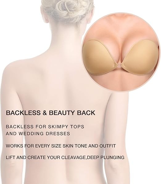 Invisible bra offers the cover and support of a normal bra without unsightly shoulder or back straps, perfect to be worn under backless, halter or evening dresses.