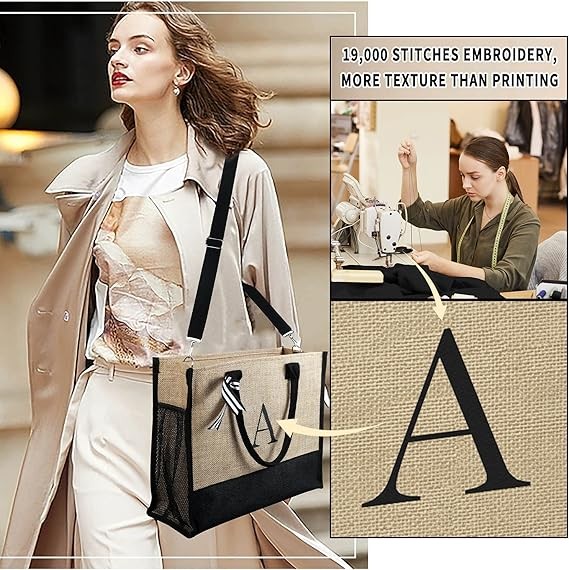Monogram Embroidery Bag: The personalized letters on our bags are high-density embroidery instead of simple printing, with no pungent smell and greener. You can choose the letter that represents your name, making your gifts for women more individual