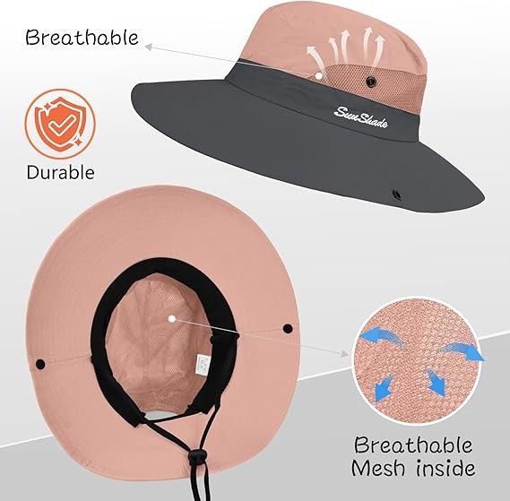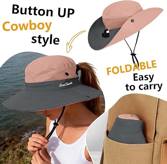 MATERIAL: This ponytail fishing sun hat is made of quick-drying, breathable polyester. UPF 50 + provide you better protection from sunshine and damaging rays.
